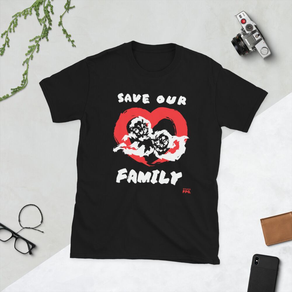 ふくろう半袖Tシャツ:ブラック【大切な家族】